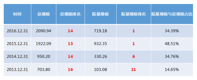 是的,论全部的基金规模,富二家低调行事,追求稳稳的幸福;但!(敲黑板)从考验基金经理投资能力的股票型基金来看,富二家连续2年荣登股票型基金规模排名榜首。So,过去这一年,有的公司发力货币基金,有的公司发力定增,富二家也在股基上发力了~