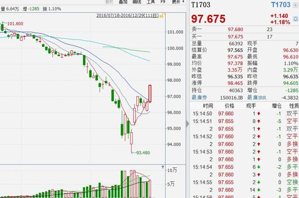 截至收盘,10年期国债期货主力合约T1703涨1.18%报97.675元,创12月12日以来新高;5年期国债期货主力合约TF1703收盘涨0.66%报99.585元。截至发稿,10年期国开债活跃券160210收益率跌6bp报3.67%,10年期国债活跃券160017收益率跌6bp报3.04%。