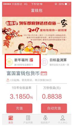 节前app富钱包更推出了收益翻倍卡活动!现下载“富钱包”app,参与“新年福利”活动,有机会赢取最高100倍富钱包收益翻倍卡~