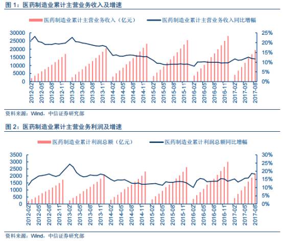 一方面,今年医药行业数据靓丽。据中信证券统计,2017年1-8月医药收入端增速为11.7%、利润端增速为18.3%,增速相较去年同期分别提升了1.7%和4.4%,并且利润端增速创下了2014年以来的新高。