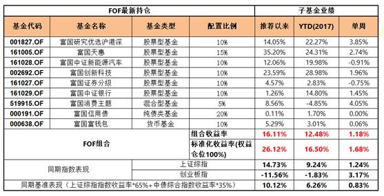 业绩目标:组合整体追求绝对收益,权益子基金追求相对排名(加权业绩位列同期富国权益前1/3分位)