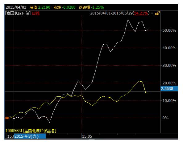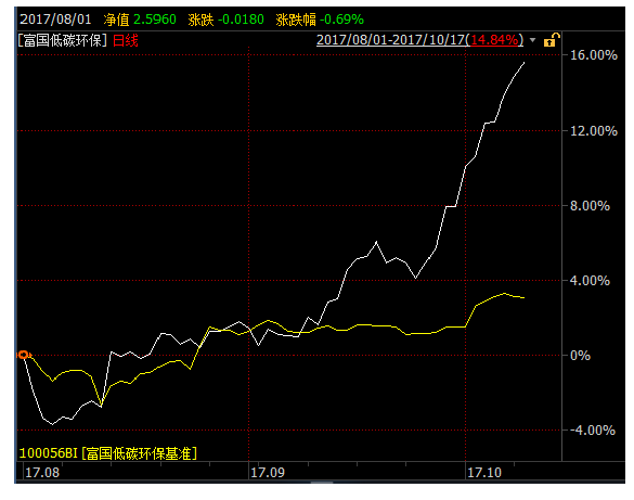 发现了吗?选对基金和入场时间很重要!让我们回顾一下那段时间的低碳走势(白线):