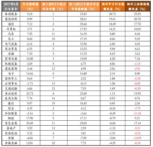 但这还不是最精彩的地方,更精彩之处是:今年6月A股通过MSCI大考之初,曾入围了222只MSCI的A股,如果我们分行业计算6月以来这222只个股的平均涨幅,会发现绝大多数都会跑赢相应的行业指数,并且白马龙头集中的汽车、家电、食品、电子等行业中,被纳入MSCI的股票,估值水平显著提升。