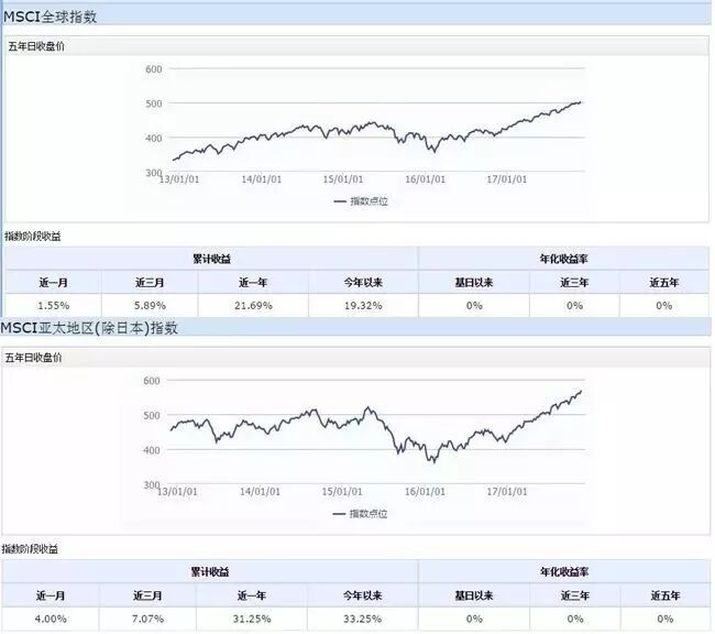 2017年初至今,亚洲股市已经跑赢了其他市场。受美股新高影响,本月22日MSCI亚太指数更是在盘中突破10年高位。香港恒生指数、日韩股市集体上涨。WIND数据显示,年初至今MSCI全球市场指数上涨19.32%,MSCI除日本亚太地区指数同期则上涨了33.25%。