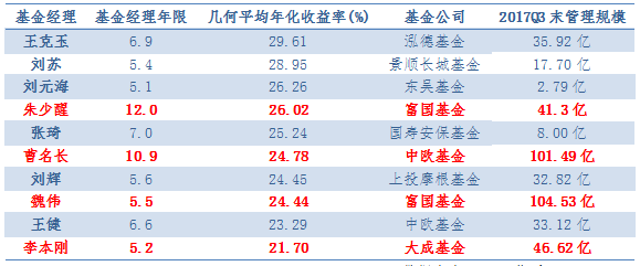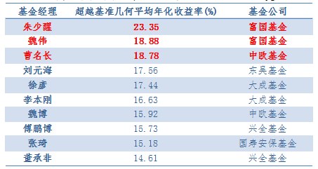 表3:从业超过5年几何平均年化收益排名前十的基金经理一览