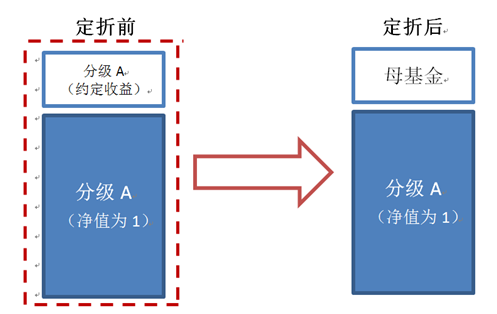 对于分级A来说,分发票息这一动作要通过“定期折算”机制完成,具体来说,就是在定期折算日,一次性把分级A的约定收益以母基金的形式发放,分级A净值继而归一。对此,客官们需要简单了解的背景知识有两点: