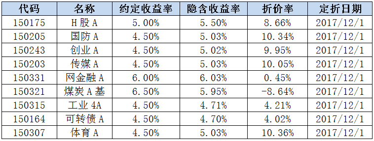 综合以上两点,客官们可提前布局将于12月15日进行定折的相关分级A,比如券商A(150200)、新能车A(150211)、军工A(150181)等。