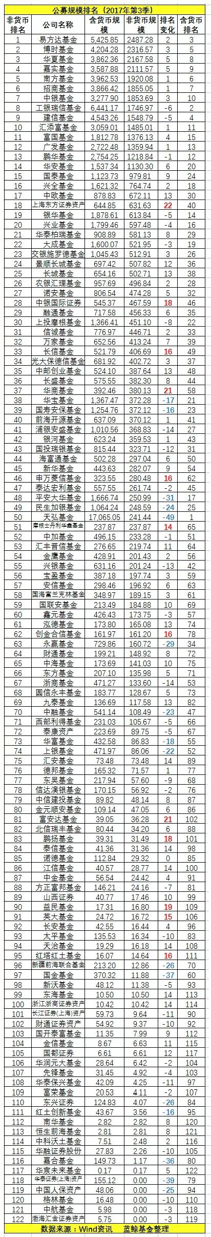 业内人士向蓝鲸财经表示,其实基金业协会从2016年就开始有非货基规模的公募排名,行业也一直在强化主动管理能力,剔除货币进行规模排名是件好事。
