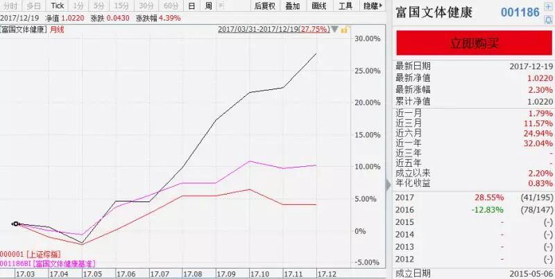 数据来源:Wind,黑线:富国文体健康 红色:上证综指 紫色:富国文体健康基准