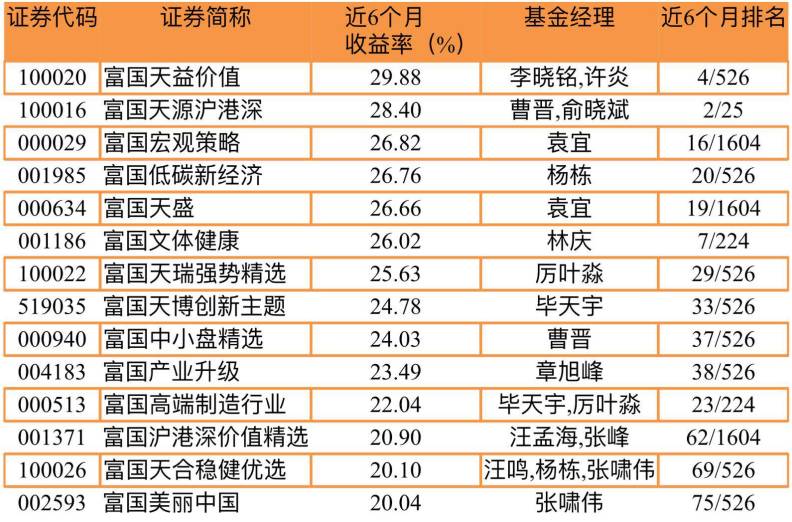 客官,如果你以为富二家黑马基金只有一只的话,那就小瞧富二家了!近6个月涨幅超20%的主动权益基金有14只,而林庆管理的富国文体健康是上述基金中,排名上升最快的一只!