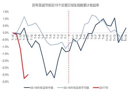 重大节日前后日历效应:(1)圣诞节前5个交易日—节后10个交易日内恒指大概率上涨(国庆节前后也有类似规律);(2)春节前15个交易日恒指下跌为主,节后止跌企稳。
