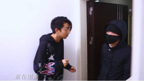这两个不速之客身着黑衣,眼神空洞,以一种扭曲的姿势贴在门口——