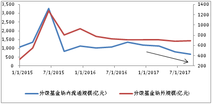 图:分级基金场内外规模走势