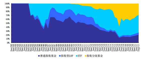 图:全市场各类型指数及基金规模占比走势