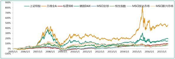 📚从数据来看,其实A股市场是非常适合长期投资的,从2005年1月1号开始算到今年6月30号,上证指数涨幅152.07%,美国标普500涨幅99.96%,恒生指数81.06%,MSCI63.46%,万得全A是463.67%。看得出来长期投资A股市场非常好,与其他发达市场比如德国、日本比较下来,我们依然是最好的。