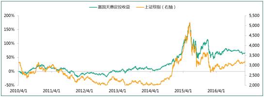 从2014年4月到2017年2月,这是一个从3200点到3200点的轮回,富国天惠定投收益66.63%。