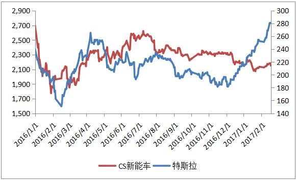 图:CS新能车与特斯拉(美股)走势对比