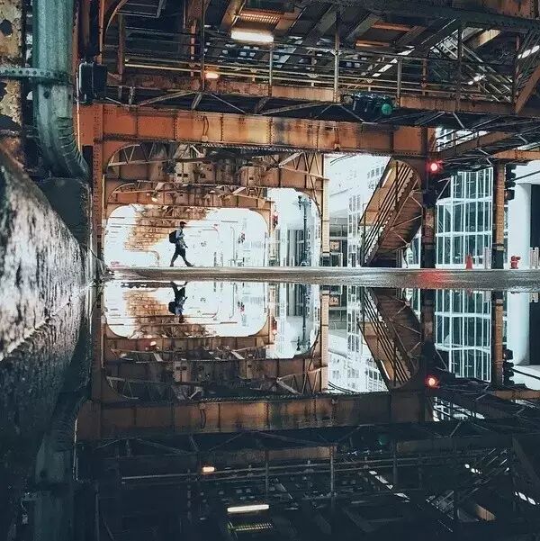 利用倒影来拍摄建筑或者城市,是增强作品画面感最为简单有效的方法。在城市里,可以利用雨后地面的水潭、建筑物前面的水池,或者建筑物本身的玻璃镜面来拍摄出倒影/倒映的画面。天然的对称度,可以马上提升画面的美感。