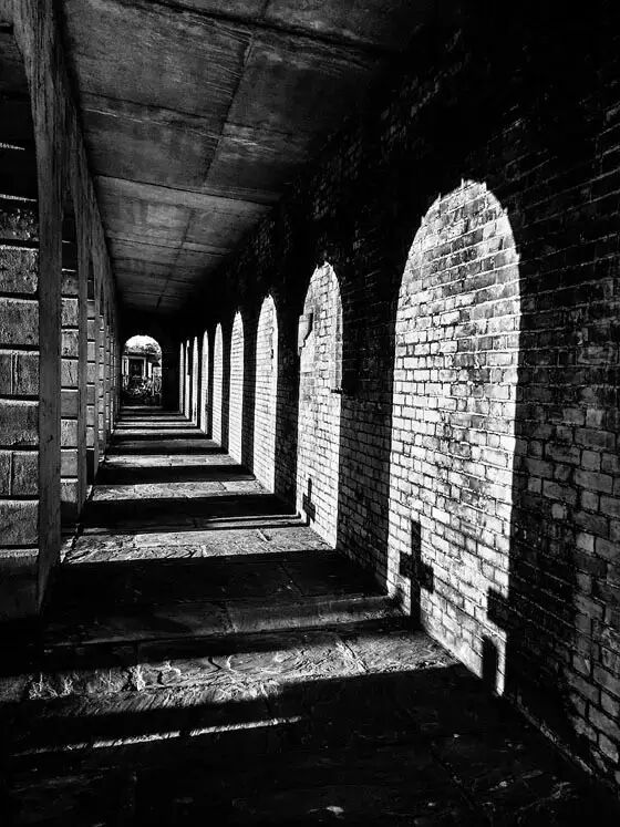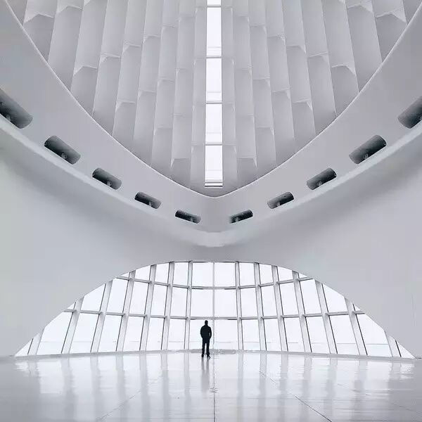 拍摄建筑室内的时候,学会尽量拍出空间的延伸感或者纵深感。中庭、楼梯间等都是最适合练手的空间。室外的话,则可以选择柱廊、巷道、街道等。