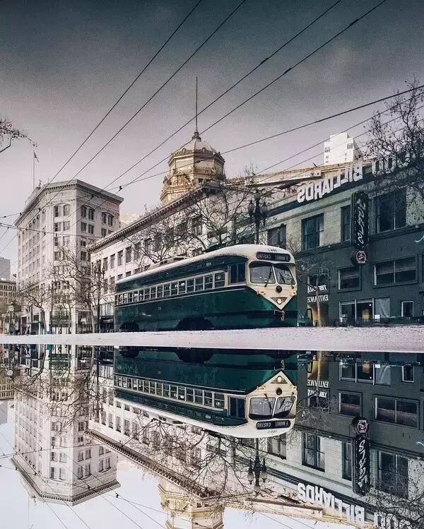 创意总是能够给人带来惊喜,手机摄影也不例外。大家都喜欢有趣又特别的照片,比如下面这两张,一张是利用旧金山市区的坡度,摄影师将原本倾斜的地平线拉平,这样一来房子反而看起来像是倾斜的一样;另一张是摄影师将地面空间镜像至天空,创造出一幅超现实的画面。