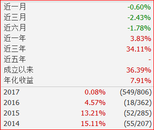 虽然最近的6个月里确有回调,但是回撤控制得十分出色。2016年回报达到了4.57%,排名362只同类基金前5%。历史上看,成立以来收益和年化收益都有傲人表现。截至2017年1月,在银河证券3年期债券中评得5星级!