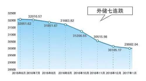 中国人民银行昨天公布的数据显示,中国1月外汇储备29982亿美元,环比下降123亿美元。不同于往昔我国外汇储备的“野蛮生长”,这已是连续第七个月下滑,至2011年2月来新低,也是我国外汇储备近六年以来首次降到3万亿以下。