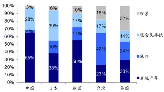 图:与国际对比中国居民资产股票配置偏低(2014年底)