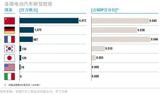 由于中国政府把新能源汽车看作是拉动新经济的一枚重要棋子,所以在全球几个汽车大国里,中国投入最多。
