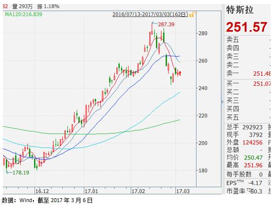 但有趣的是,反过来再看新能源汽车的领头羊,海外的特斯拉的股价,却转而下跌。