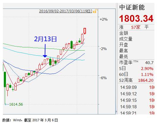 结果新能源板块不负富二望,短短时间内显示了强大的爆发力:多只个股连续涨停,中证新能指数也是稳步上行。
