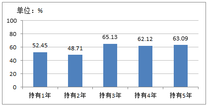 看,持有到达3年时,获得正收益的概率突然提高了很多!虽然,持有六年、七年可能会更稳妥,但将资金封闭六七年,对客官来说,恐怕不是一件舒服的事情。