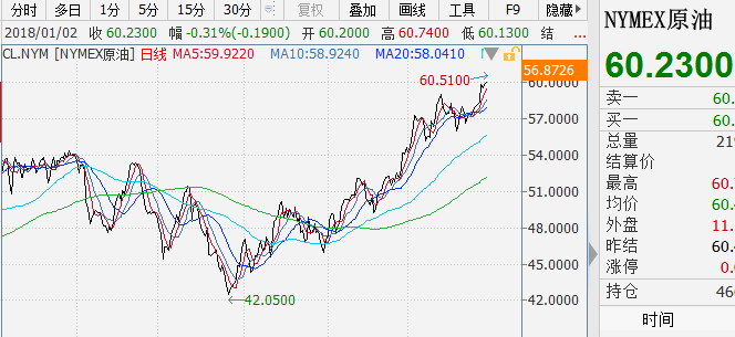 再看原油,2017年NYMEX原油整体涨幅约为14.14%:
