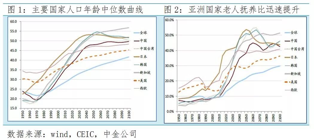 照此下去,中国人口总数将进入下滑阶段,且越来越少的年轻人需要赡养越来越多的老人。数据显示,2010 年开始,亚洲各经济体开始进入老年人抚养比迅速上升的阶段。当前日本的老年人抚养比为36.5%,相当于3个青年人抚养1个老年人;中国也将于2040年左右达到。