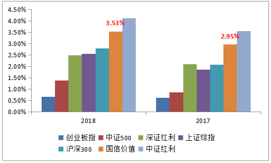 截至2018年11月20日,国信价值指数股息率(近12个月)为3.53%,沪深300为2.78%,中证红利为4.12%。