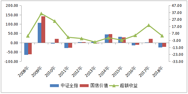 从历史数据来看,在过去11年,国信价值指数仅有3年小幅跑输中证全指,胜率高达73%。