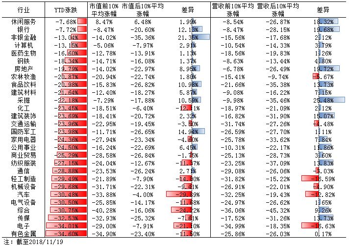 但市值则出现了一定的分化,市值处于两头的表现相对较好,而中等市值则表现更差一些。