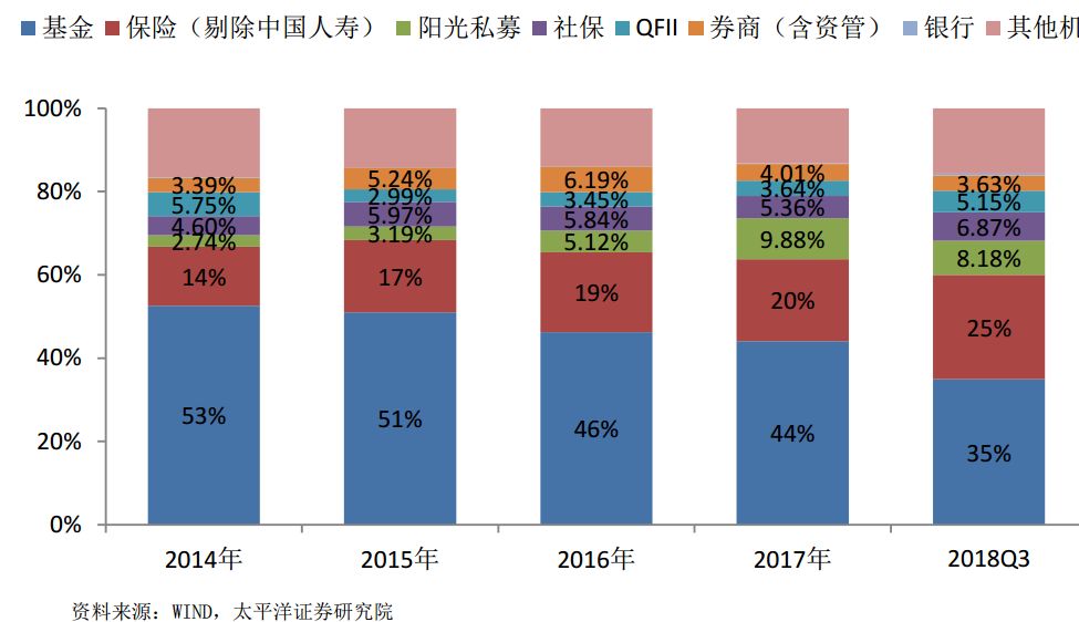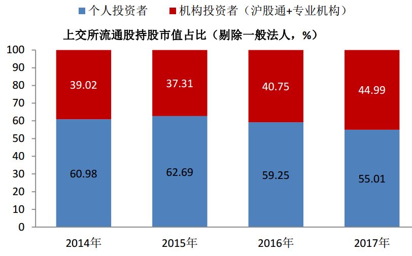 虽然2018年的数据还没有出来,但从市场活跃度、级掌柜和一些客户的交流情况、以及外资的不断涌入,今年机构投资者的持有市值占比,料将增加。