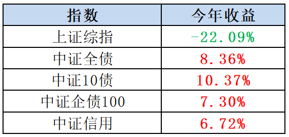 表:股票指数与债券指数今年收益对比