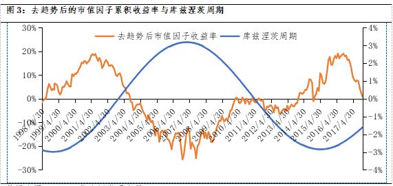 我们认为,小市值因子的表现体现了不同经济周期下投资者偏好的变化。在库兹涅茨周期的上行期,经济长周期向上,大市值股票盈利更具有确定性,因此市场呈现大市值风格。而当经济长周期向下,拥有大市值特征的公司盈利变差的确定性也更强,资金将倾向更有可能盈利的小市值股票。