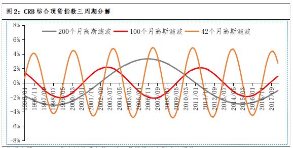 ✍在各类资产价格中,商品价格在一定程度上最能反映实体经济的需求,因此用CRB商品综合指数来对实体经济进行观测,而CRB指数的200个月周期(库兹涅茨周期)代表了经济的长期走势。