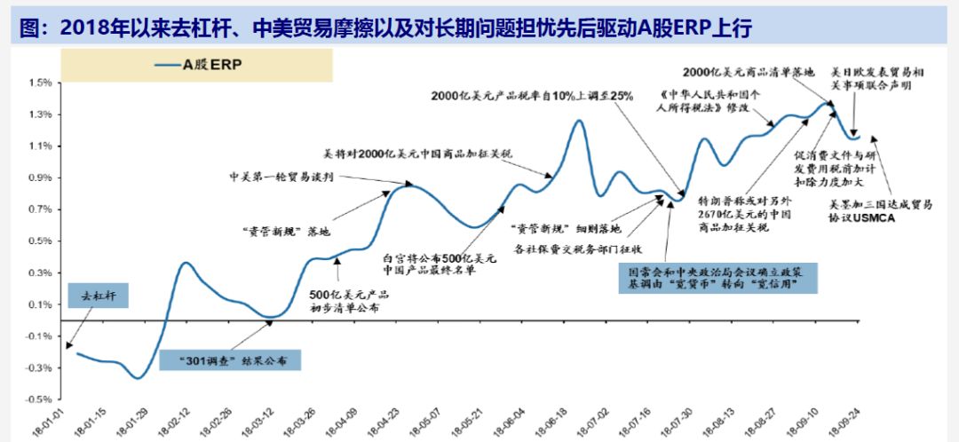 今年受去杠杆、中美贸易摩擦以及担忧基本面的影响,A股情绪一直很差,股权风险溢价一直在往上升。