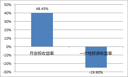 别的基金富二不敢说,但是沪深300还是适合的。根据富二的测算,从2008-1-1,沪深300指数超过5300点时开始月定投,至2018-1-30,如果以沪深300指数期间的实际收益率计算,定投收益率可达48.45%,而一次性投资收益率-19.90%!