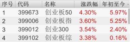 根据最新数据,市场上26只主要宽基指数(基本覆盖了各种风格)中,今年有且仅有4只指数收益为正,而这4只指数,便是创业板旗下有且仅有的4只宽基指数。