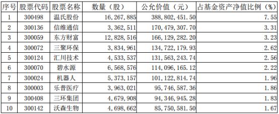 截至2017年四季度前十大重仓股及持仓比例