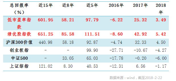 ◆如果我们以上市公司业绩优异为“物美”,以相对低市盈率为“价廉”,用历史数据对低市盈率指数、绩优股指数进行回溯。