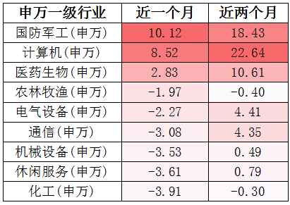 如果说贸易战下还有受益者的话,军工一定是其中一个。据统计,近一个月国防军工(申万)上涨10.12%,稳居申万28个一级行业中的No.1。