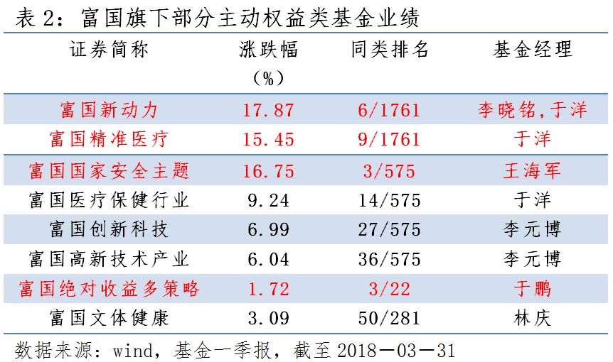 受市场波动分化影响,一季度富国旗下的指数型基金区间热点轮动明显,季度表现有所分化,但仍有5 只“新经济”成长风格产品取得相对好的收益。