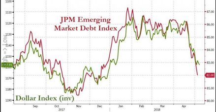 金融博客ZeroHedge指出,新兴市场风暴的推手就是强势美元。美元越强,升值速度越快,对新兴市场的冲击力越大。