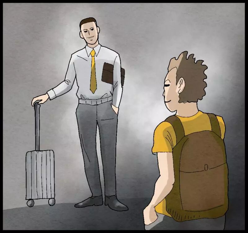 文科生:衬衫西裤公文包,有时推个行李箱。