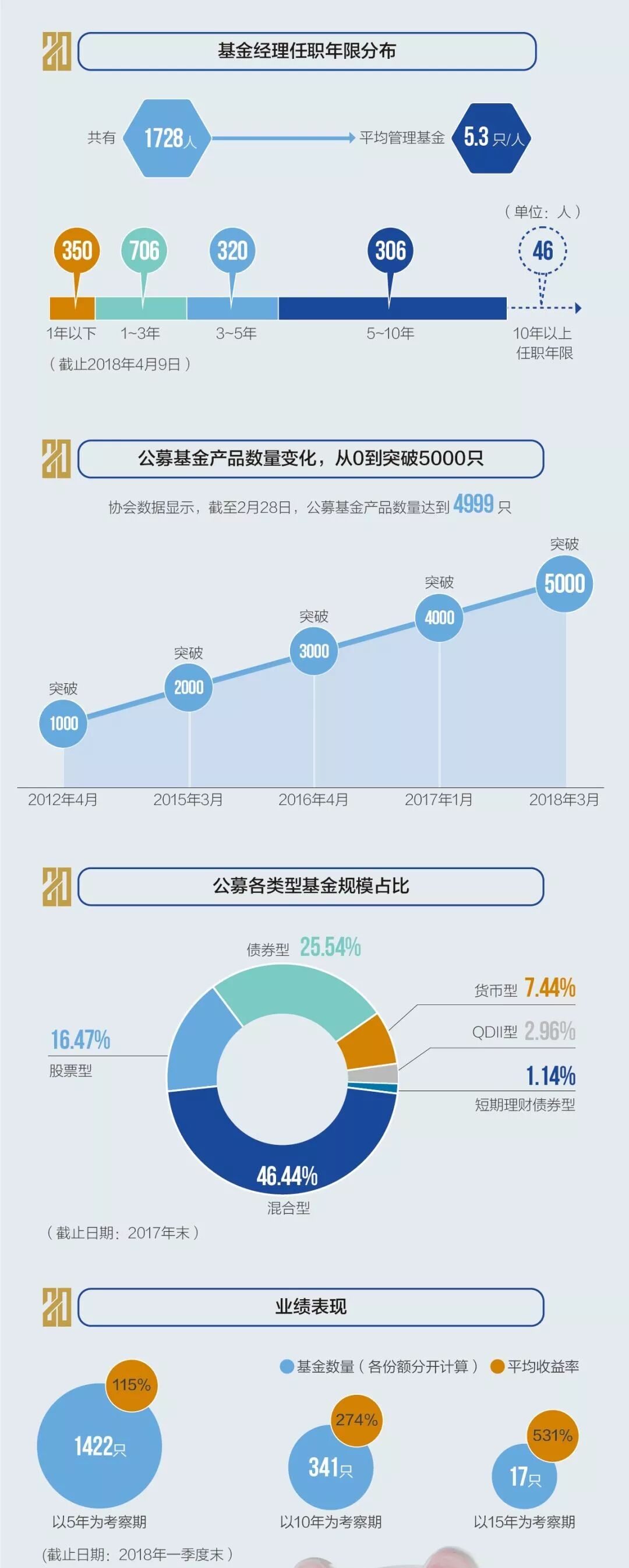 从1998年第一只公募基金产品发行至今,时间已经过去了20年。这20年,确实可以用风云变幻来形容,资管领域的“迭代”速度也是很快的:当P2P大量跑路,银行理财注定打破刚兑,部分投向不合理的信托、私募类、专户类产品迈向逾期……公募基金虽然也不断“淘汰”了一些风险收益不匹配、杠杆水平过高的产品,却始终稳扎稳打,公募规模从0增长到接近13万亿,产品数量突破5000只,成为老百姓最优质的投资首选。